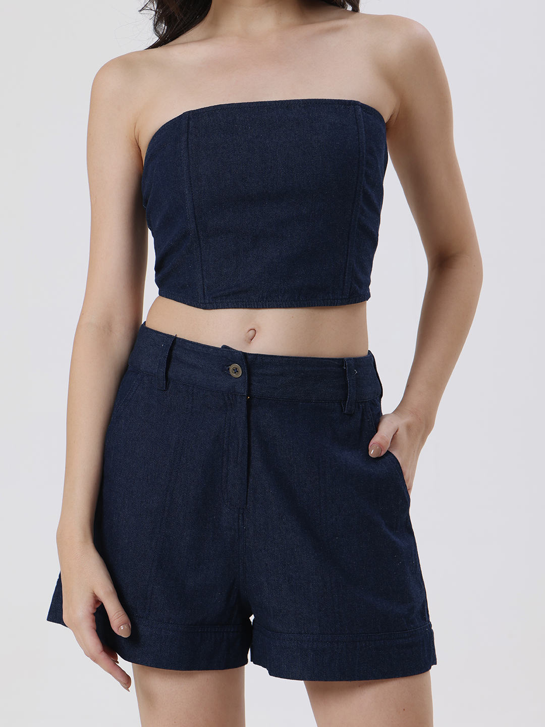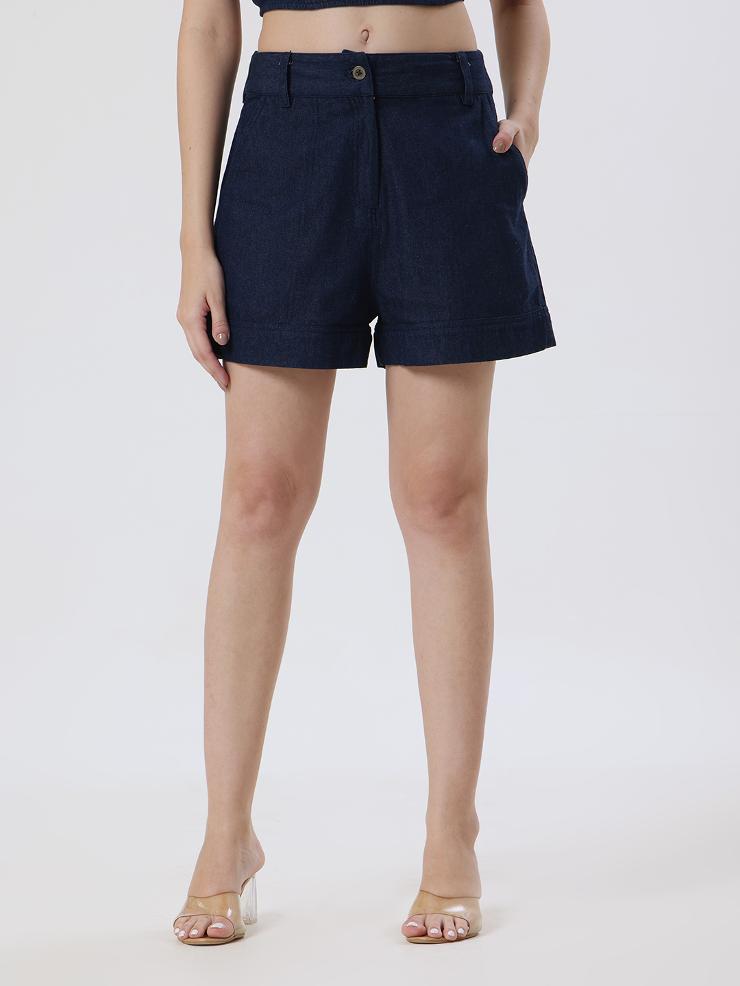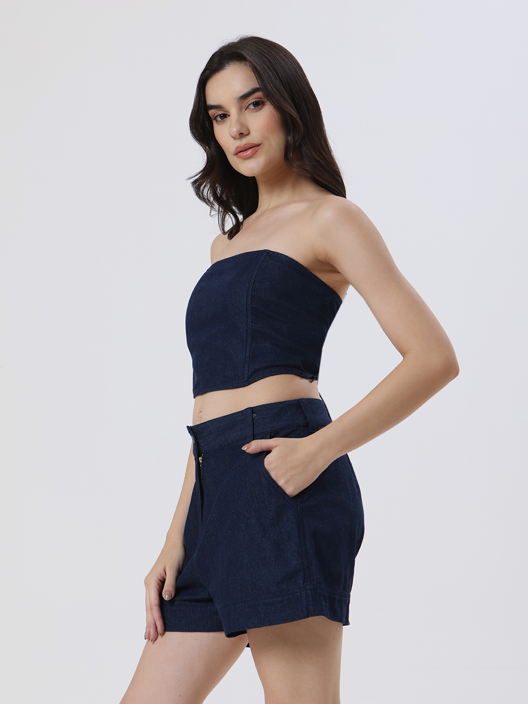 Crafted from premium denim, these shorts combine effortless style with a refined silhouette with subtle side pocket details .